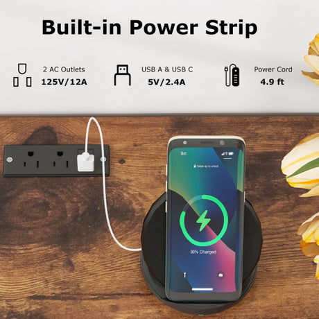 TV Stand with Power Outlets and Adjustable Shelf for 60 Inch TVs-Black