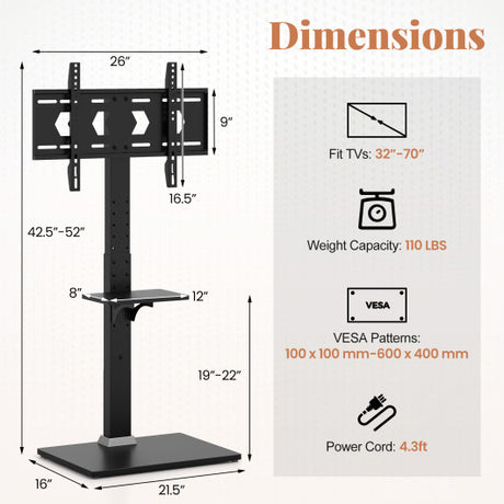 Height Adjustable Floor TV Stand with AV Shelf for 32-70 Inch TVs
