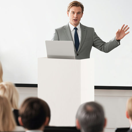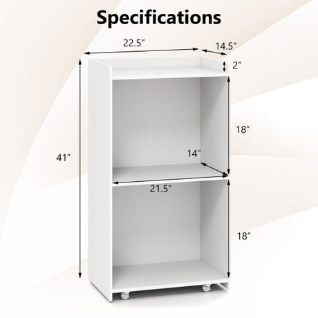 Rolling Podium Stand with 2 Shelves and Lockable Wheels-White