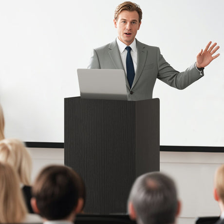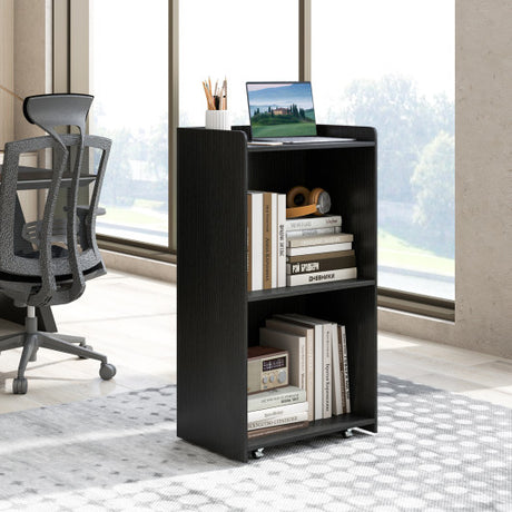 Rolling Podium Stand with 2 Shelves and Lockable Wheels-Black