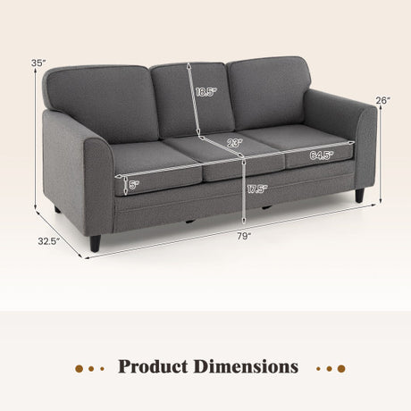 Upholstered Teddy Velvet 3-Seat Sofa with Comfy Back Pillows-Gray