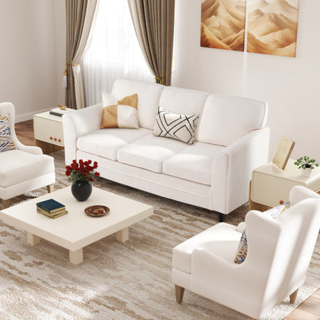 Upholstered Teddy Velvet 3-Seat Sofa with Comfy Back Pillows-White