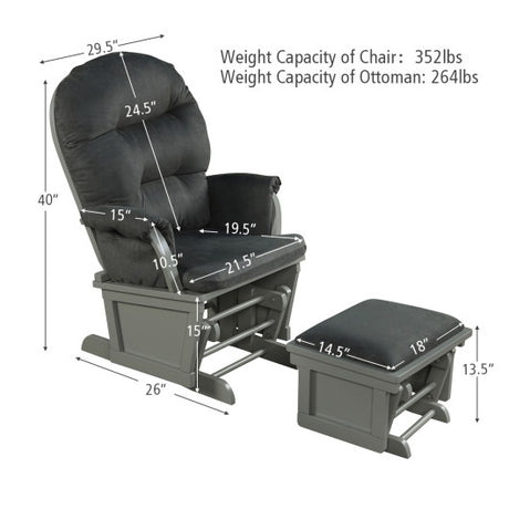 Wood Baby Glider and Ottoman Cushion Set with Padded Armrests for Nursing-Gray