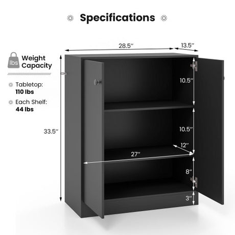 2-Door Modern Floor Storage Cabinet with 3-Tier Shelf-Black
