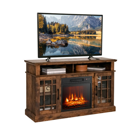 48 Inch Electric Fireplace TV Stand with Cabinets for TVs Up to 55 Inch-Brown