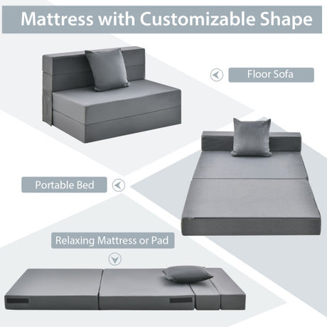 6 Inch Tri-fold Sofa Bed Folding Mattress with Pillow-Dark Gray