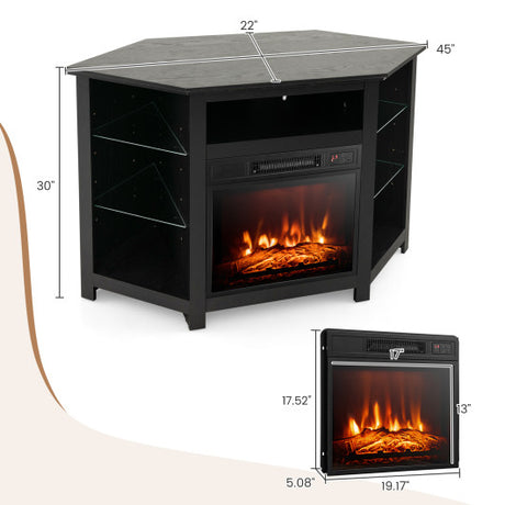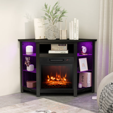 Fireplace Corner TV Stand with LED Lights and Smart APP Control for 50 Inches TV-Black