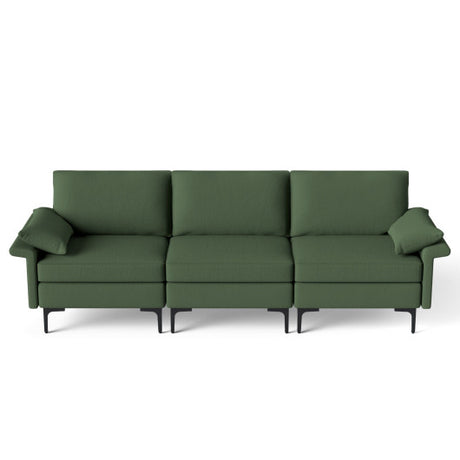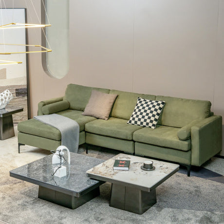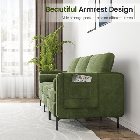 3-Seat Sofa Sectional with Side Storage Pocket and Metal Leg-Army Green