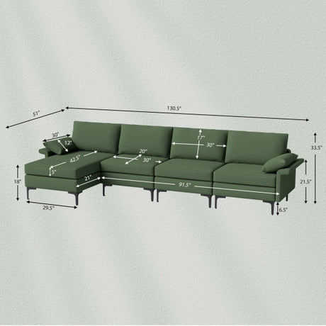 Extra Large Modular L-shaped Sectional Sofa with Reversible Chaise for 4-5 People-Army Green