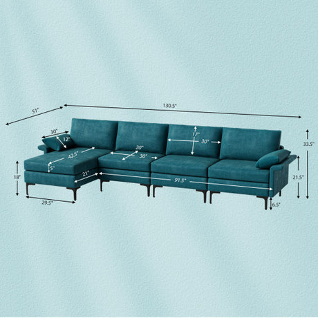 Extra Large Modular L-shaped Sectional Sofa with Reversible Chaise for 4-5 People-Peacock Blue