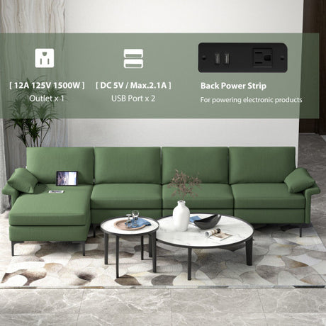 Modular 1/2/3/4-Seat L-Shaped Sectional Sofa Couch with Socket USB Port-3-Seat L-shaped