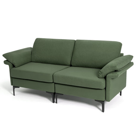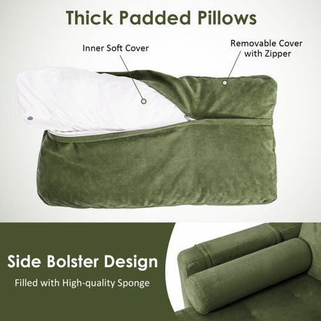 Modern Fabric Loveseat Sofa for with Metal Legs and Armrest Pillows-Army Green