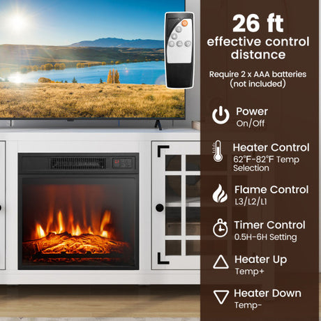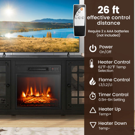 58 Inch TV Stand with 1500W Faux Fireplace for TVs up to 65 Inch-Black