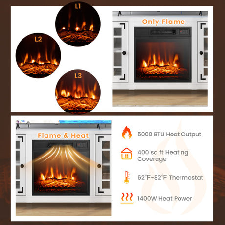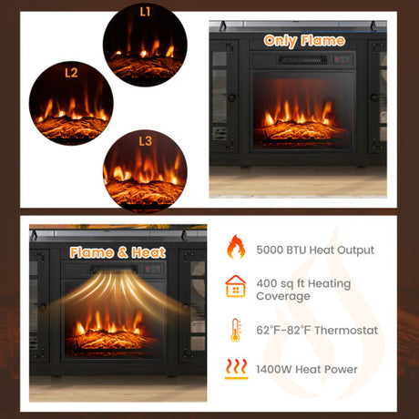 58 Inch TV Stand with 1500W Faux Fireplace for TVs up to 65 Inch-Vintage