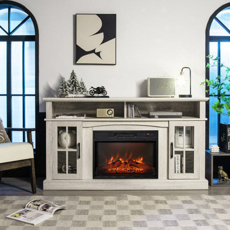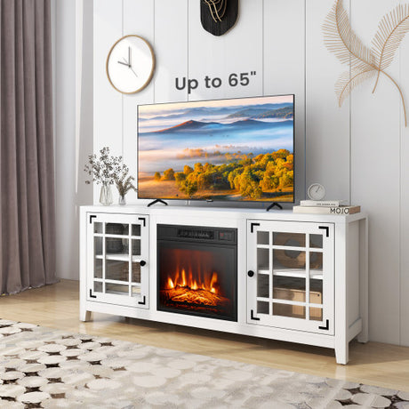 58 Inch Fireplace TV Stand with Adjustable Shelves for TVs up to 65 Inch-White