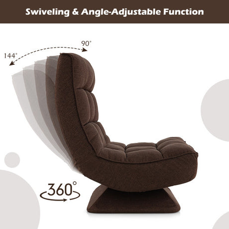 5-Level Adjustable 360° Swivel Floor Chair with Massage Pillow-Brown