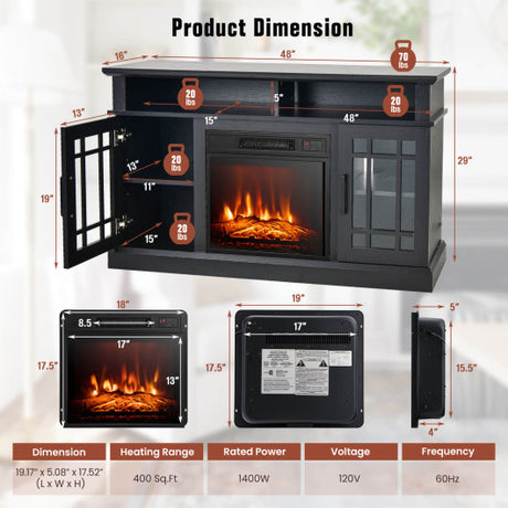 48 Inch Electric Fireplace TV Stand with Cabinets for TVs Up to 55 Inch-Black