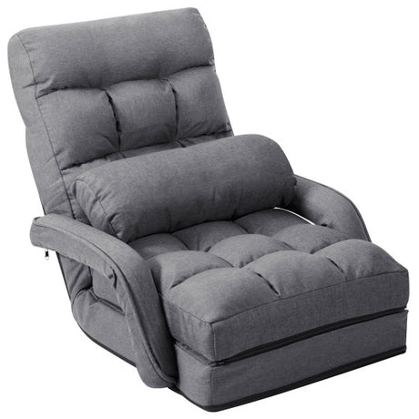 Folding Lazy Floor Chair Sofa with Armrests and Pillow-Gray