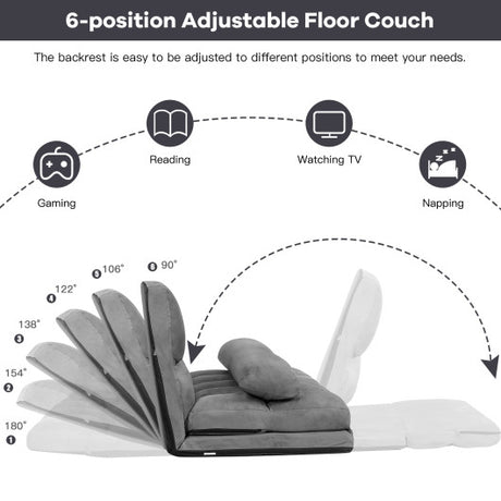 6-Position Foldable Floor Sofa Bed with Detachable Cloth Cover-Gray