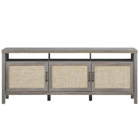 TV Stand Entertainment Media Console with 2 Rattan Cabinets and Open Shelves-White