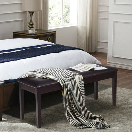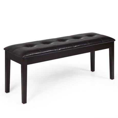 Upholstered Dining Room PU Bench Solid Wood Button Tufted-Brown