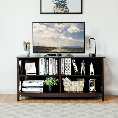 Wooden TV Stand Entertainment for TVs up to 55 Inch with X-Shaped Frame-Brown