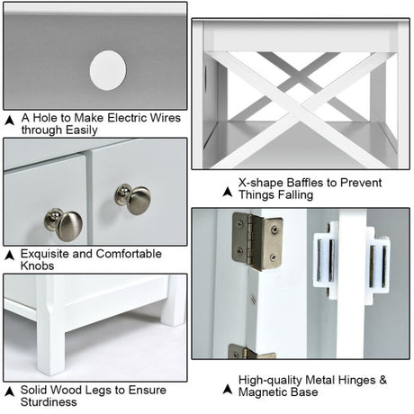 44 Inch Wooden Storage Cabinet TV Stand-White