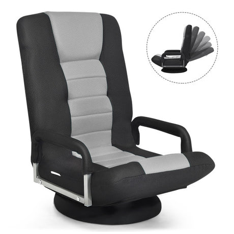 360-Degree Swivel Gaming Floor Chair with Foldable Adjustable Backrest-Gray