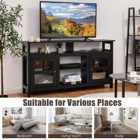 58 Inch TV Stand Entertainment Console Center with 2 Cabinets-Black