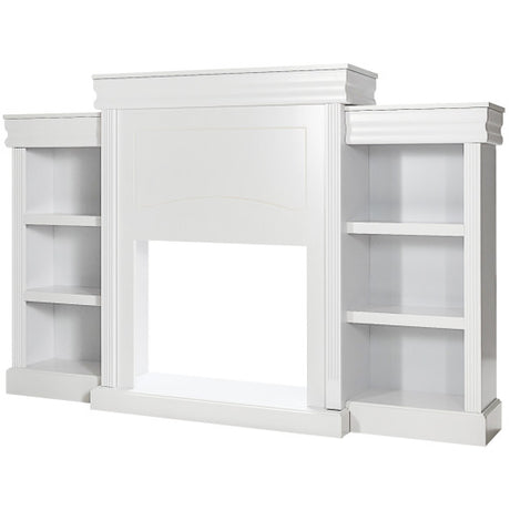 70 Inch Modern Fireplace Media Entertainment Center with Bookcase-White