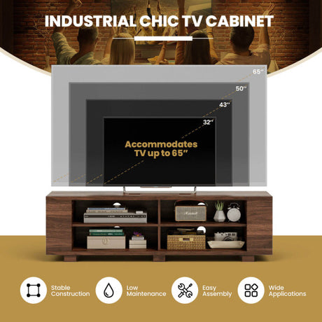 60€�Industrial TV Stand Entertainment Center with Shelve and Cabinet-Brown