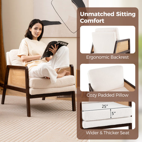 Mid Century Modern Accent Chair with Rattan Arms and Cushion-Natural