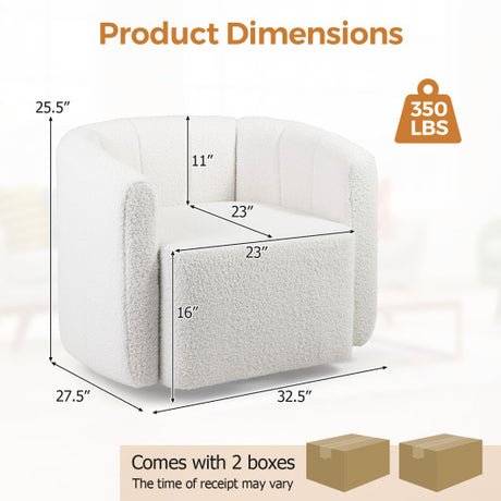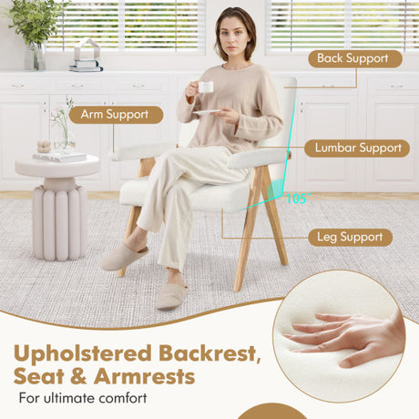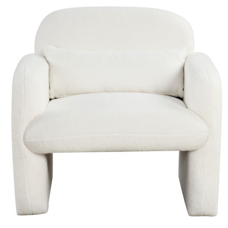 Modern Upholstered Sherpa Accent Chair with Curved Backrest and Armrests-White