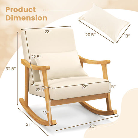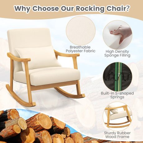 Upholstered Rocking Chair with Pillow and Rubber Wood Frame-Beige