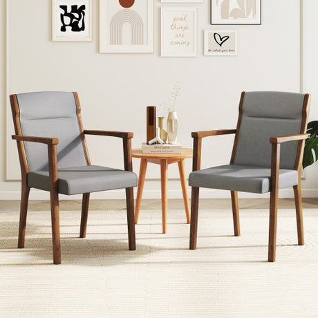 Upholstered Wooden Accent Chairs Set of 2 with High Back and Soft Cushion-Gray