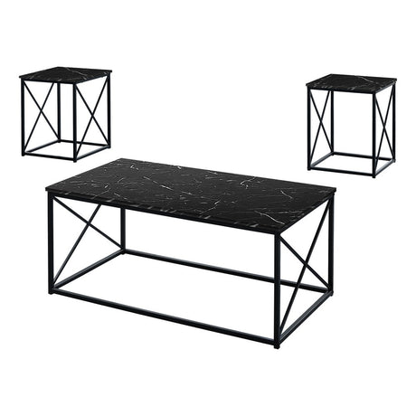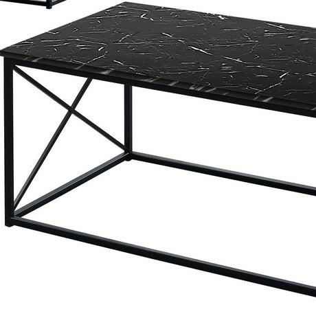 Set of Two Black Faux Marble And Solid Wood Round Abstract Nested Coffee Tables