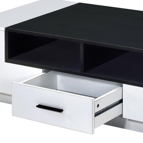 47" Black and White Wood Floor Shelf Coffee Table With Drawer And Three Shelves