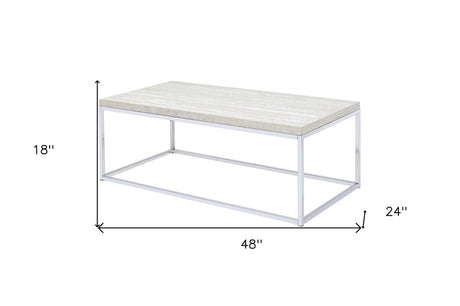 Regular price $679.01Unit price /UnavailableIn stock48" Chrome And White Oak Manufactured Wood And Metal Rectangular Coffee Table