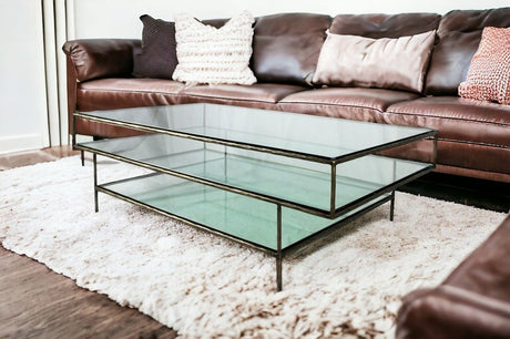 54" Clear and Brass Glass and Iron Coffee Table