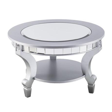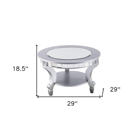 29" Silver Mirrored And Metal Round Mirrored Coffee Table
