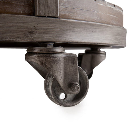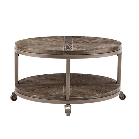32" Brown Wood And Iron With Iron Round Distressed Coffee Table