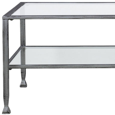 48" Silver Glass And Metal Rectangular Coffee Table