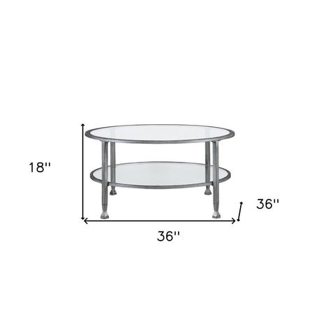 36" Silver Glass And Metal Round Coffee Table