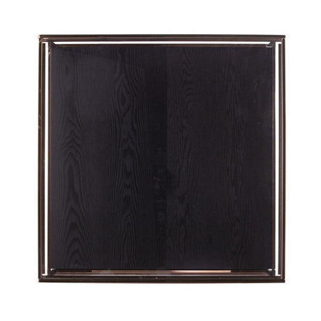33" Champagne Glass And Solid Manufactured Wood Square Coffee Table