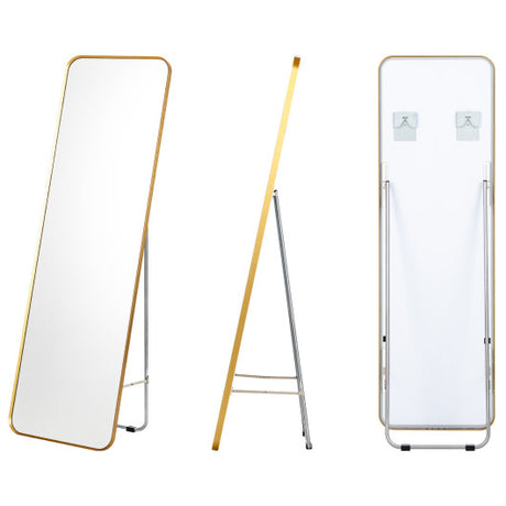 Full Length Wall Mounted Body Mirror with Free Standing Stand-Golden