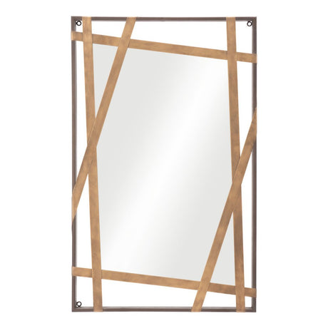 Asymmetrical Abstract Irregular Shaped Wall Mirror with Rustic Frame-Natural