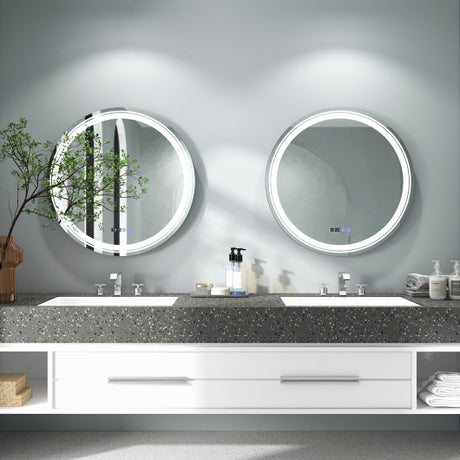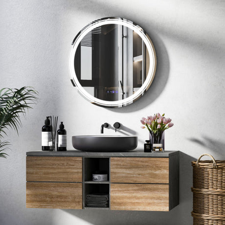 Anti-Fog Round Led Bathroom Mirror with 3 Color LED Lights-L