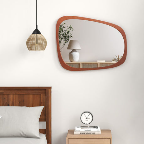 Large Water Proof Irregular Framed Decoration Wall Mirror with Expansion Screws-Natural