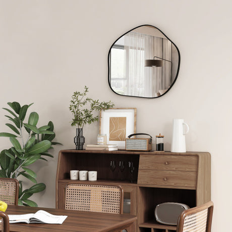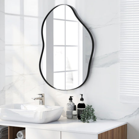 Irregular Wall Mirror Metal Frame Asymmetrical Mirror with Expansion Screws-Black