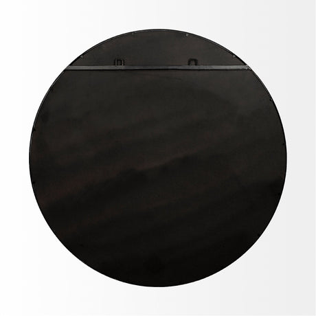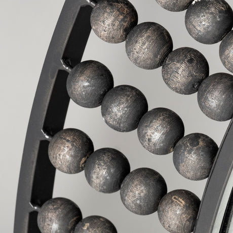 42" Round Black Metal Frame Wall Mirror With Wood Beads
